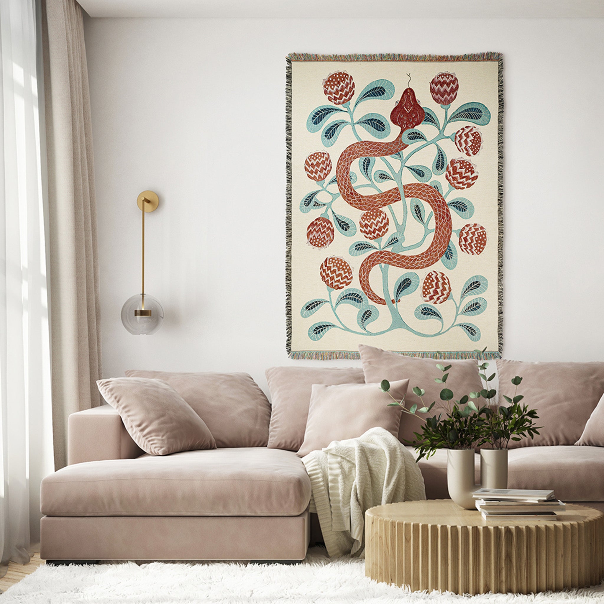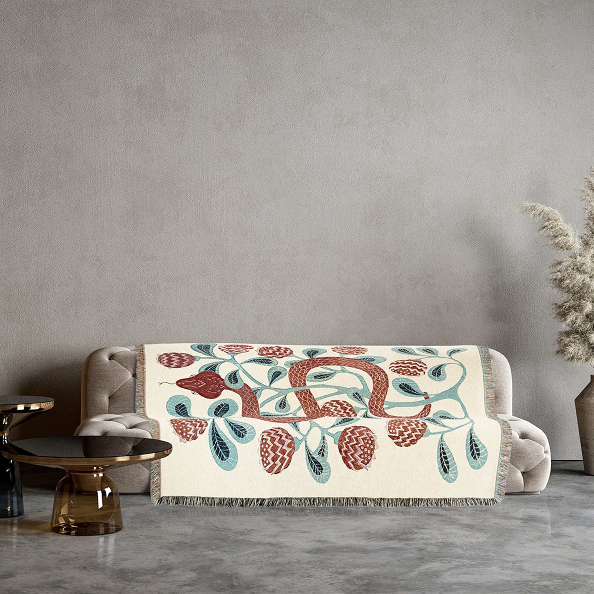 Add a touch of whimsy and eclecticism to your house with this gorgeous woven cotton throw. Featuring a bold snake design and jacquard-woven in cotton, this stunning throw will be a great addition, whether on your couch, bed or even on your empty wall.